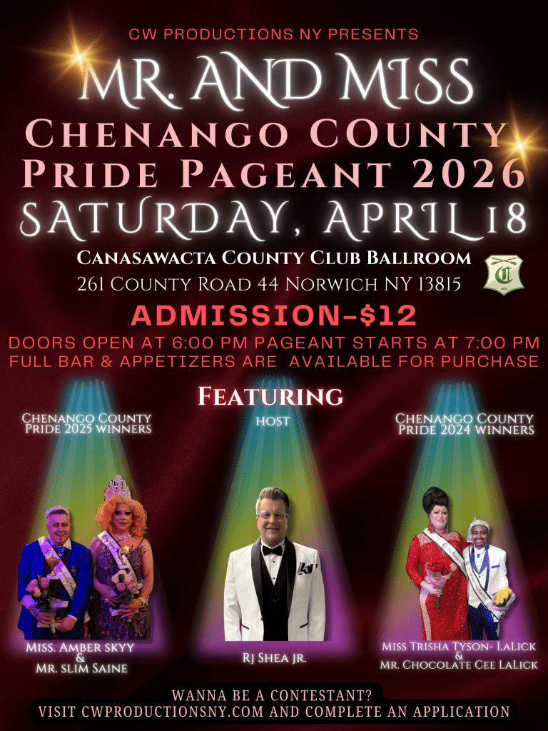 Join the fun that is the Mr. and Miss Chenango County Pride Pageant.